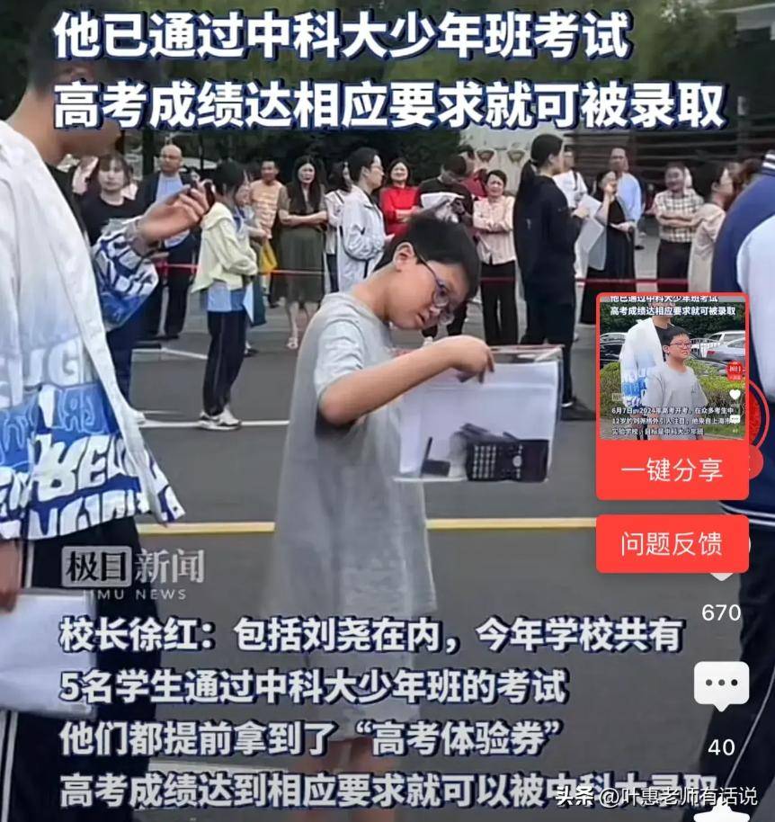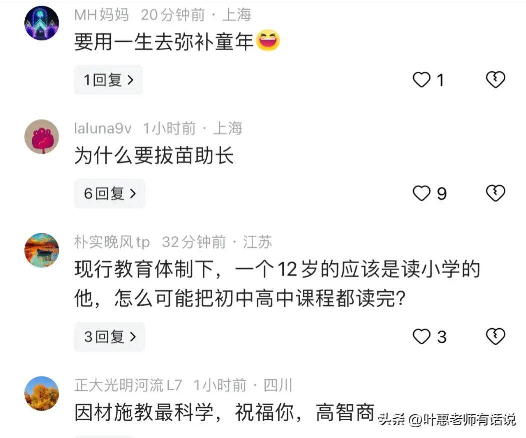 这条消息一出,立刻在网上引发了轩然。有人惊叹:&3412岁就考中科大,这孩子是吃了爱因斯坦的奶粉长大的吗?&34也有人质疑:&34这不是拔苗助长吗?搞不好进了大学反而被带坏了!&34