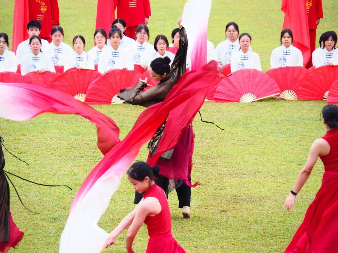 医学技术系学子手持红白相间的花伞登场,伞面随音乐起伏开合流转,红白交织间勾勒出灵动画面,为整场活动画上圆满且富有创意的句号。